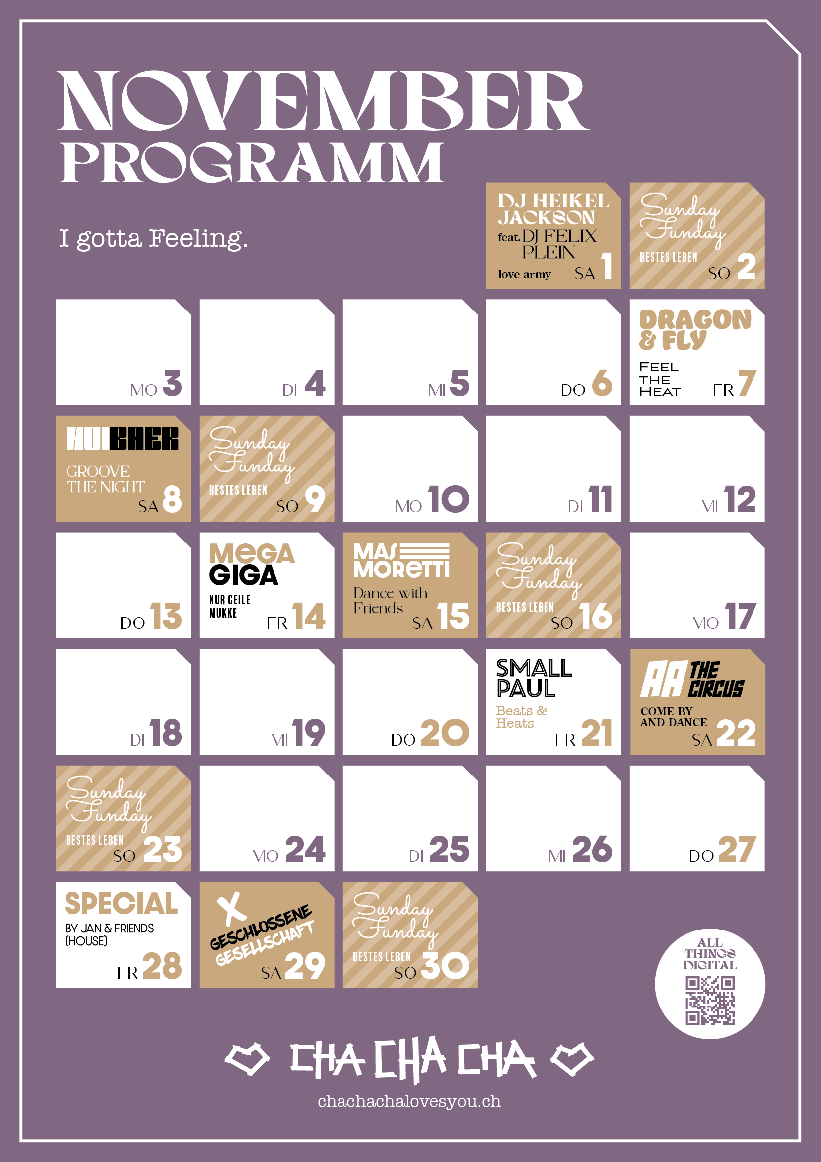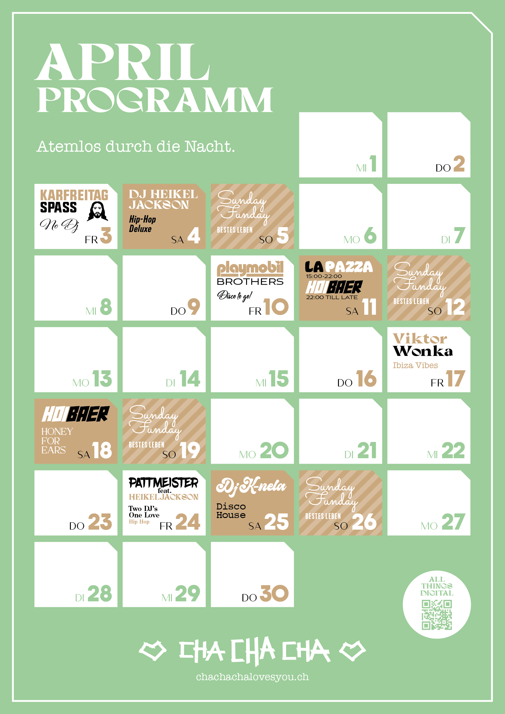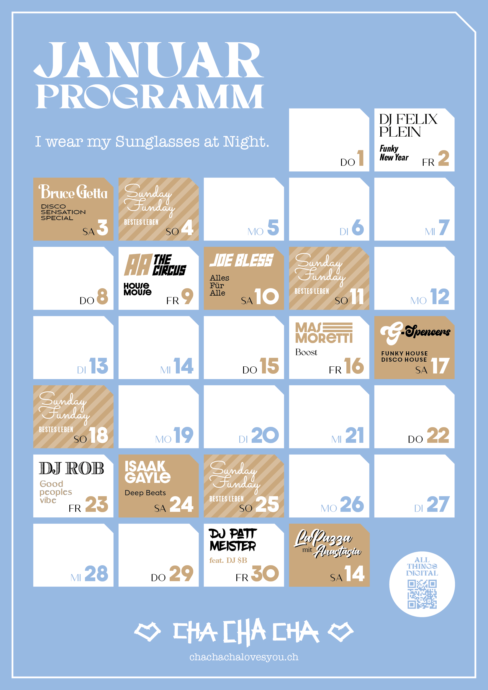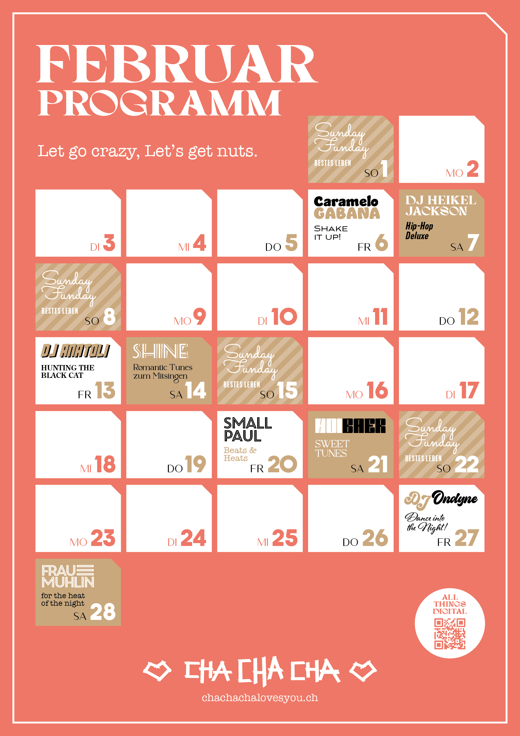 Hier findest du Monat für Monat unser Programm. DJ, Events und alles was gute Laune macht. Immer frisch, immer gut.
